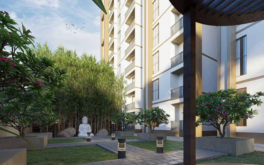 Buildspire is responsible for the end-to-end architectural design of Blissful Living. The design reflects a harmonious blend of modern architecture and functional living spaces. Each apartment is meticulously planned, ensuring optimal use of space, natural light, and ventilation. The architectural vision also incorporates premium amenities, open areas, and landscaped gardens that provide a peaceful and luxurious living environment for residents.3D Visualization